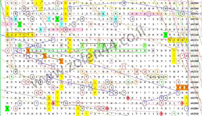 נעבור לתמונת הצופן המלאה (בתמונה למעלה) ונחפש שורה המתחילה (בעמודת "מיקום המילה") במספר הנמוך או השווה למספר 640362 (לפי הדוגמא הנ"ל) במקרה שלנו נקפוץ לשורה מס' 640332.